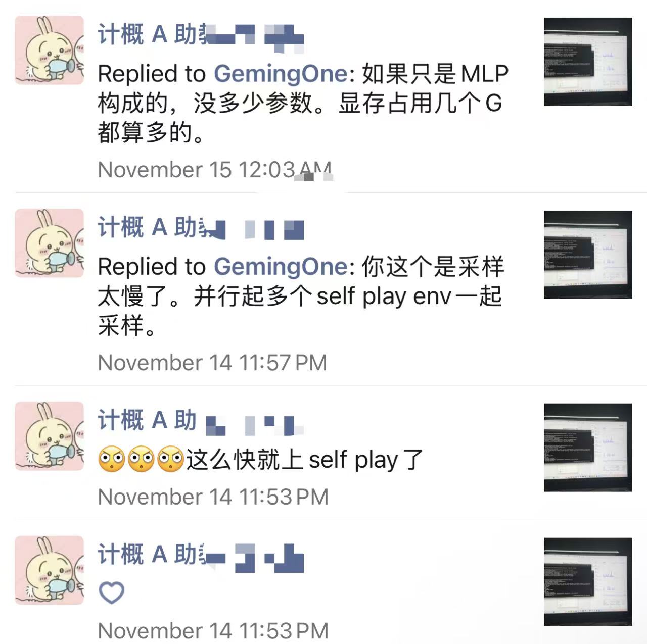 至此,我有了一个可以运行的基础版本。它可以跑,但仅此而已——在单个线程上,MCTS(蒙特卡洛树搜索)的速度慢得令人绝望。此时我发了pyq吐槽…不过我助教居然看到了还真的指出了有可能的方向..!